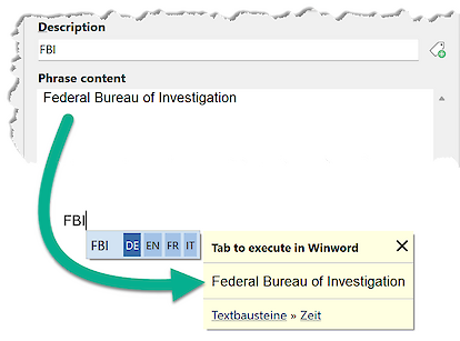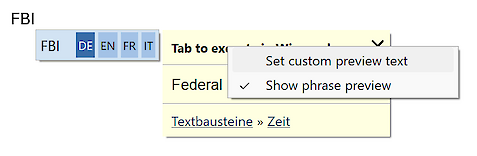 If your phrase library contains multiple languages, the preview shows you the expected output in the preselected language.