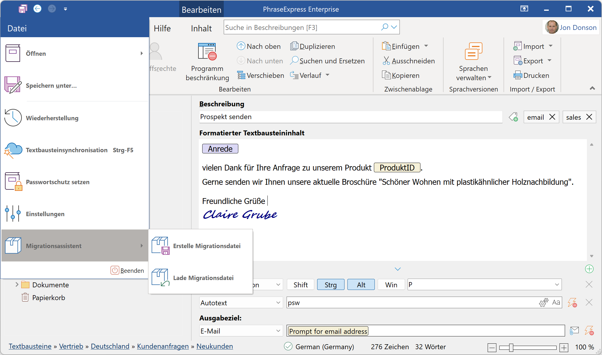 So erstellen Sie eine PhraseExpress Migrationsdatei: