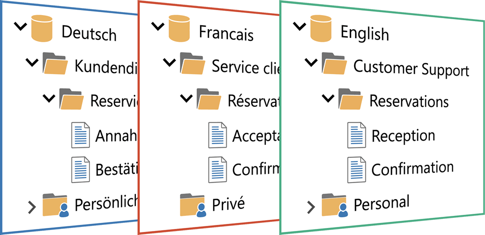 You can switch to a specific language by pressing a hotkey while preserving the phrase tree structure, autotext abbreviations, hotkeys and phrase related settings which stay the same when switching between levels. Only the description and the phrase contents is being switched: