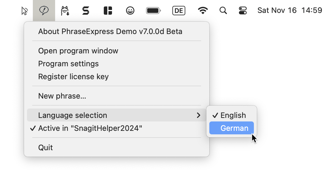 PhraseExpress supports automated, AI-based translation from one language version to another.